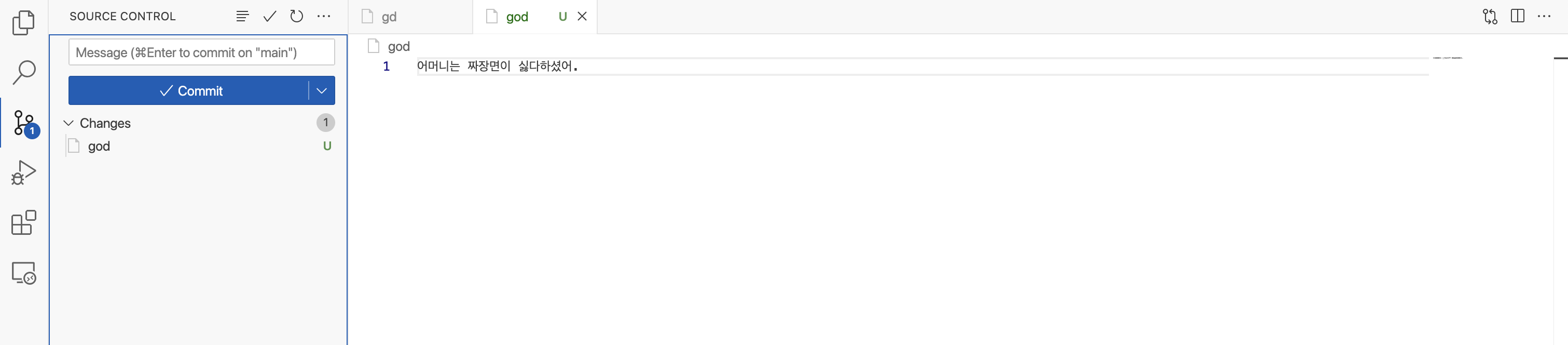 파일을 수정하거나 새로만들면 Source Control로 간다.
