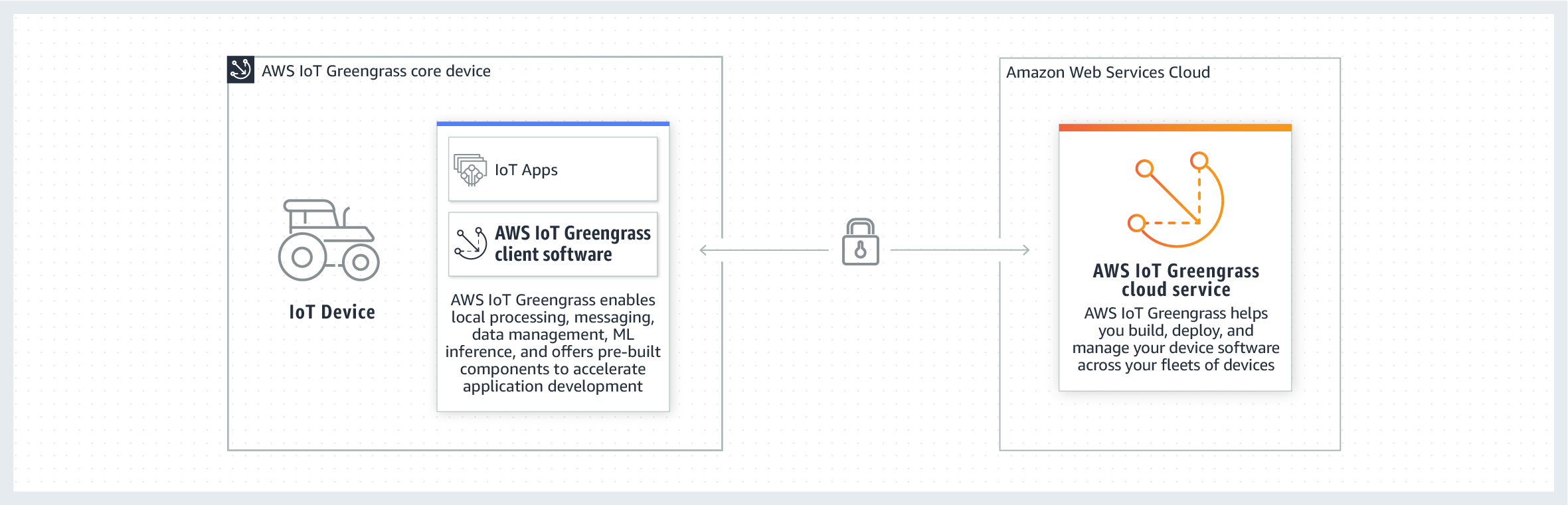 위 그림에 보이는 AWS IoT Greengrass는 디바이스 소프트웨어를 구축, 배포, 관리하기 위한 오픈 소스 엣지 런타임이자 클라우드 서비스입니다.