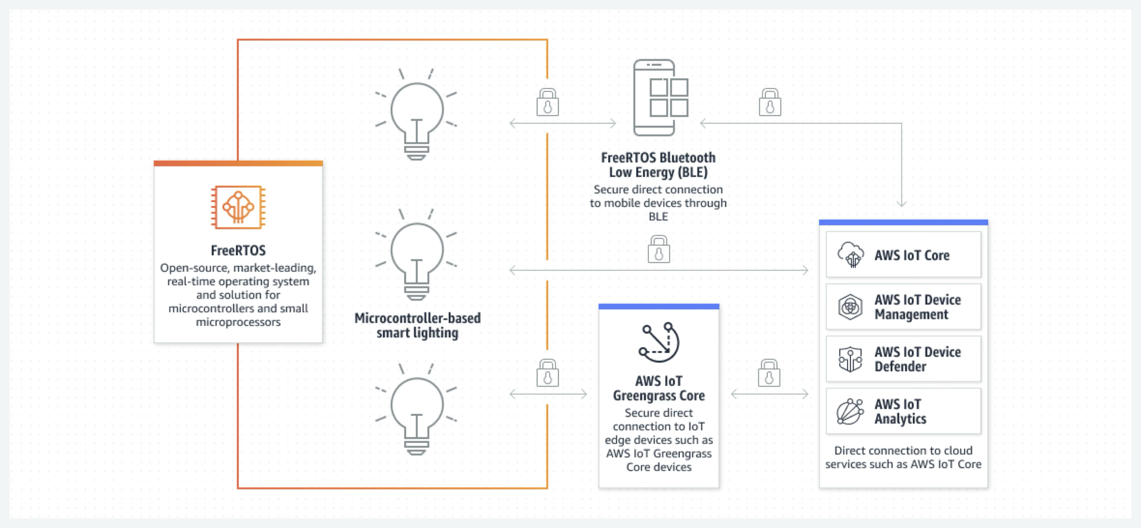 첫째로 AWS IoT는 FreeRTOS라는 오픈 소스로 제공되는 클라우드 중립적인 실시간 운영 체제로, 빠르고 믿을 수 있으며 응답 속도가 빠른 커널을 제공하고 있습니다.
